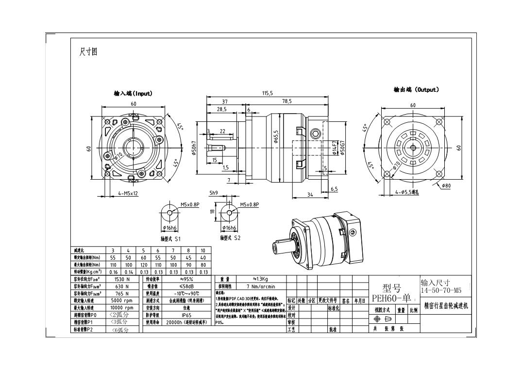 额定输出扭矩:55/50/60/55/50/45/40